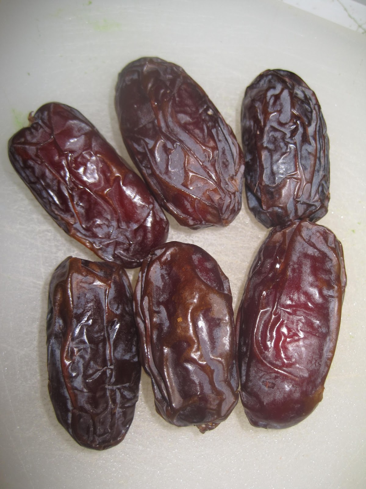 Cut date in half through the center and carefully remove pit through opening. (I teach elementary school and we call this “Hamburger style” of cutting, vs. hotdog. This means to cut it crosswise instead of lengthwise. )