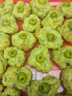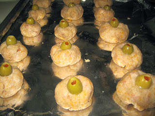These are easy sausage balls to make, and adding the spanish olives to create the eyes.