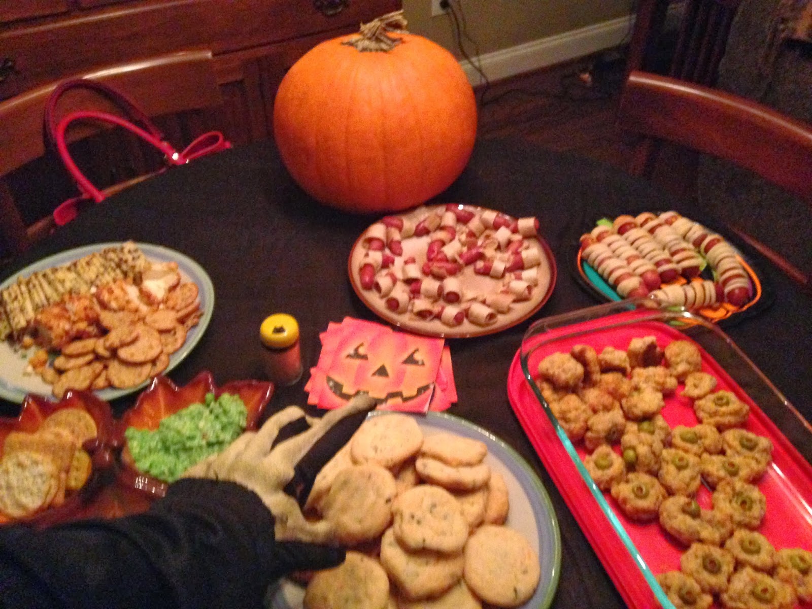 Menu included: Monster Eyeballs, Mummified Hot Dogs, Frankenstein Toes, Mummy Pizzas, Booger Dip.