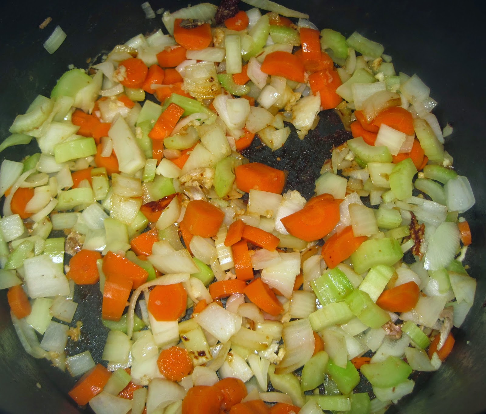 Add garlic, onions, carrots, and celery to pot; cook until caramelized, about 20 minutes.