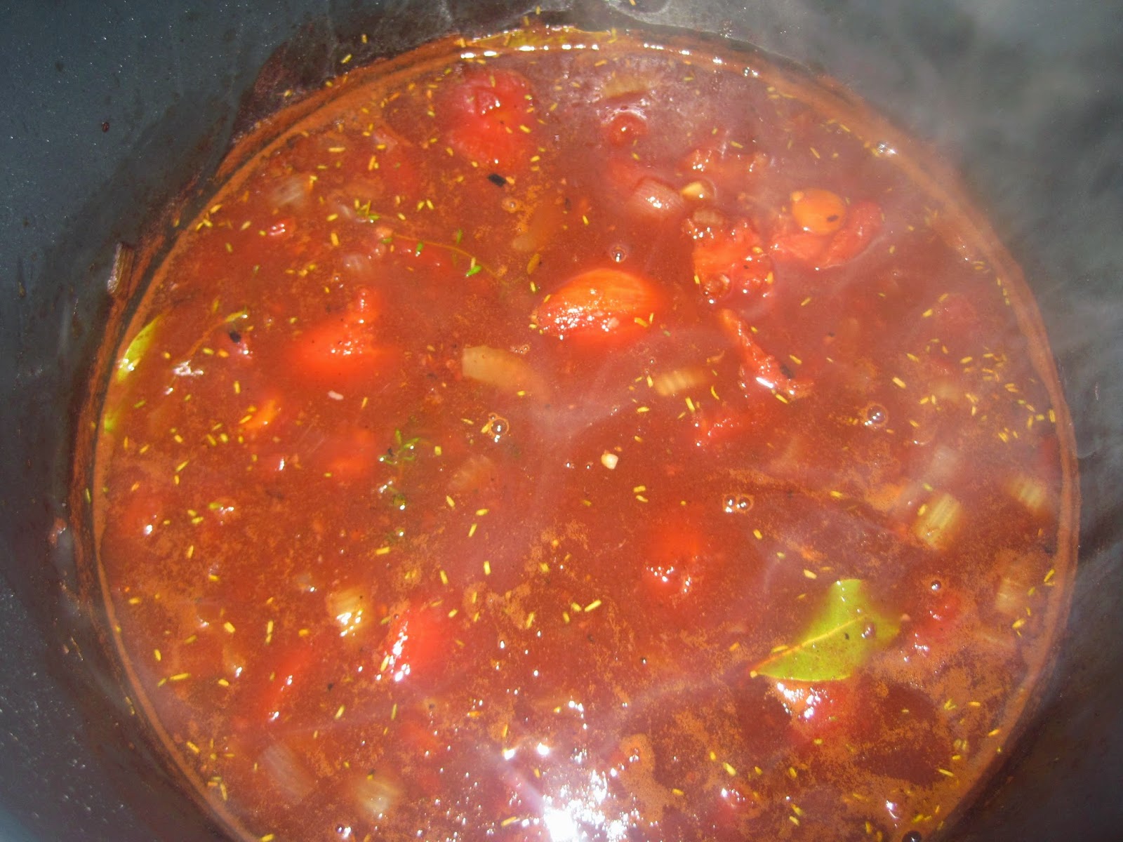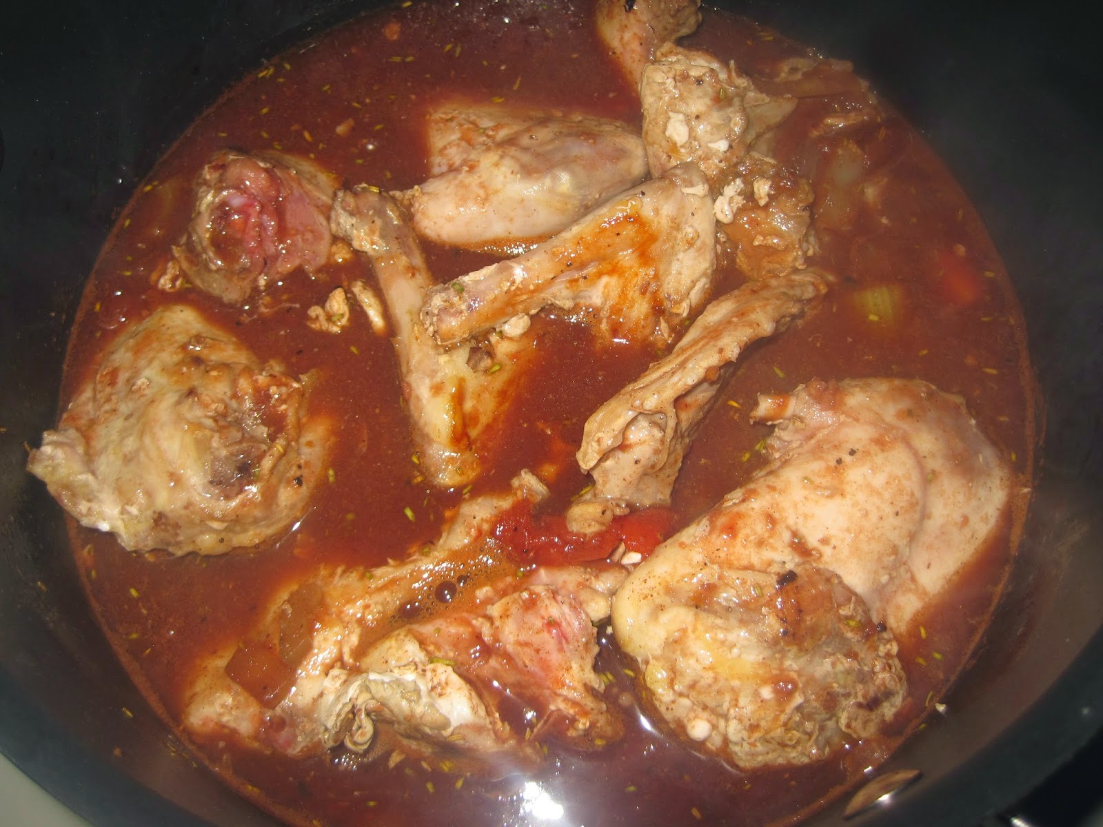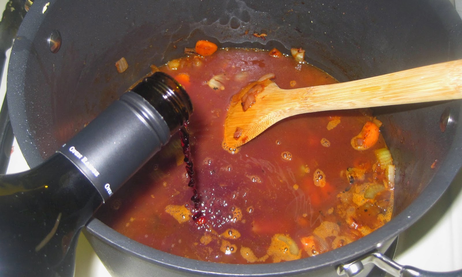 Add tomato paste, wine, and chicken stock; cook about 5 minutes.