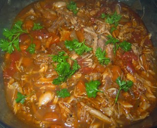 Remove rabbit from pot, shred meat off bones, and discard bones; return meat to pot and season with salt and pepper. Serve ragù over pasta; sprinkle with parsley and parmesan. (I suggest adding a few drops of sriracha for those who want more than a ‘mild’ flavor.)
