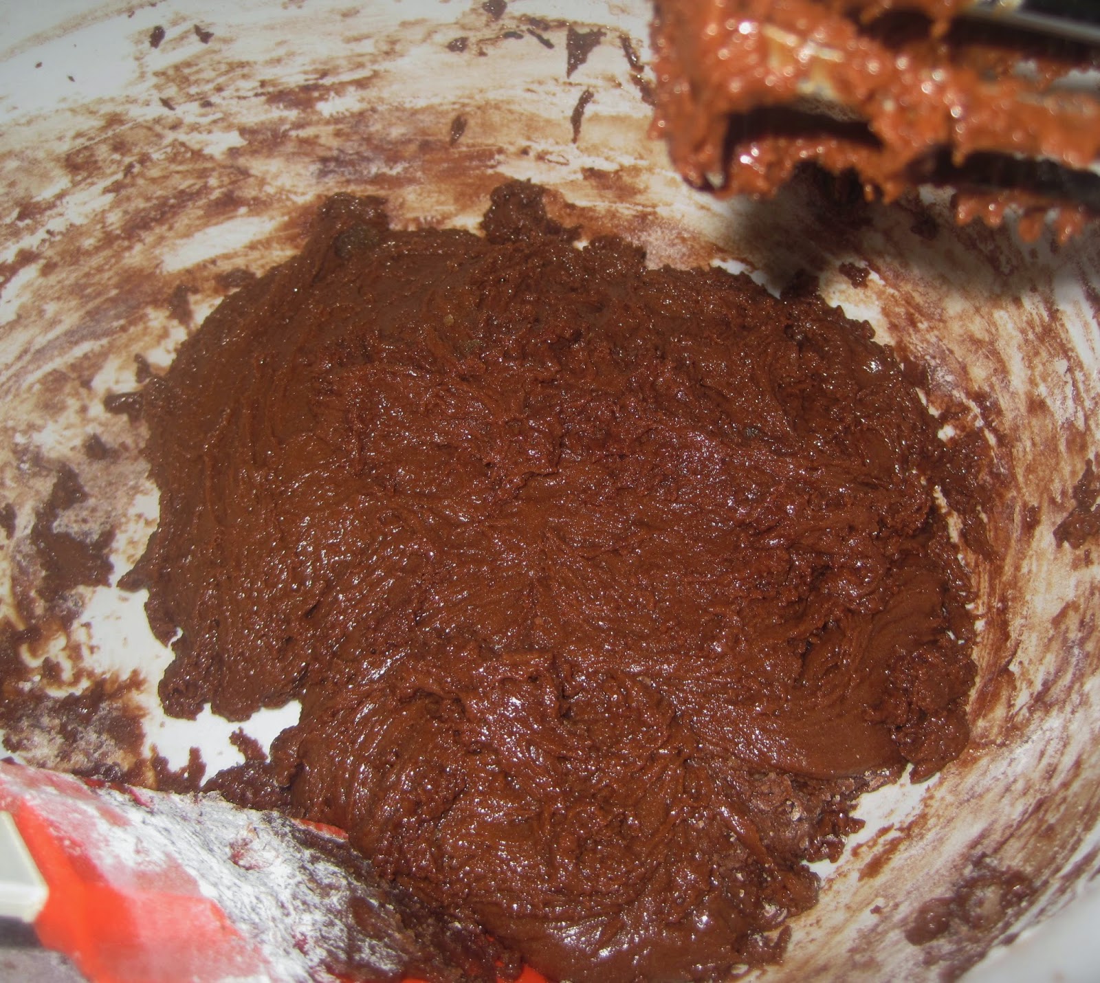 Add the salt, baking soda, baking powder, cocoa, and flour, mixing until well combined.