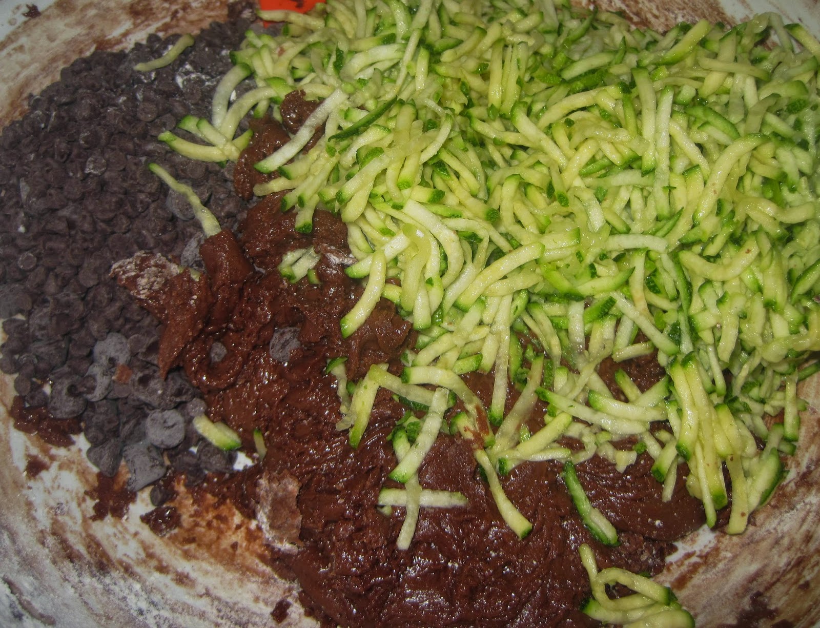 Stir in the zucchini and chocolate chips. Pour the batter into the prepared pan.