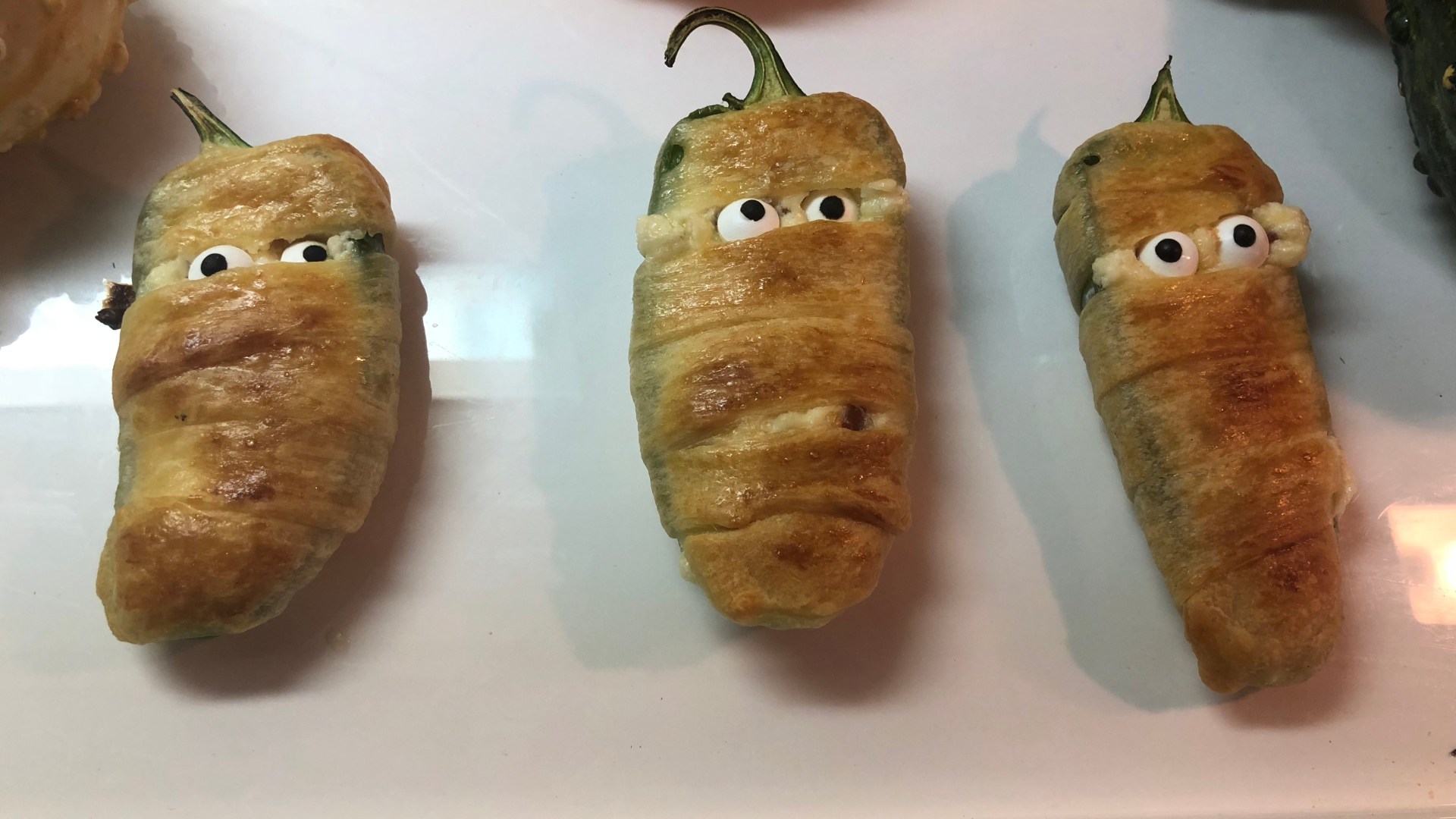 Happy Halloween, everyone! This is such a fun and festive time of the year to celebrate. The appetizers can be super spooky or super cute. I loved this recipe cause first, who doesn’t love jalapeno poppers? Second, they are just so stinking adorable. All of your guests are going to devour these jalapeno popper mummies!
