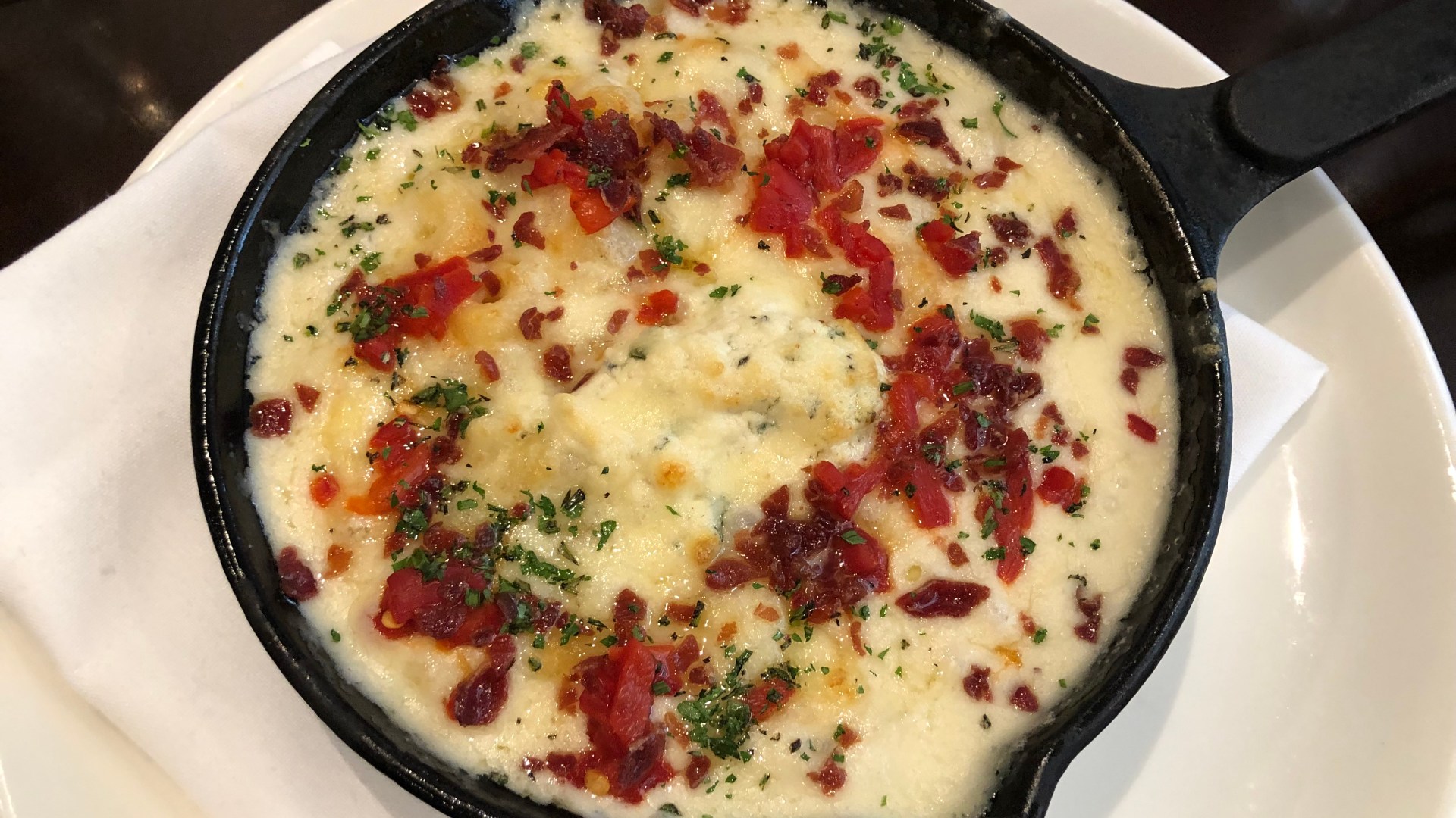 Being a lover of ordering the savory dishes at brunch, (and really the lunch items more than then breakfast), I couldn’t resist the Cast Iron Mac & Cheese. The cheese sauce is a cheddar, but there is a dollop of extra goat Gornay cheese in the middle. It’s also topped with crispy country ham and grilled piquillo peppers, all served in a bubbling cast iron skillet.
