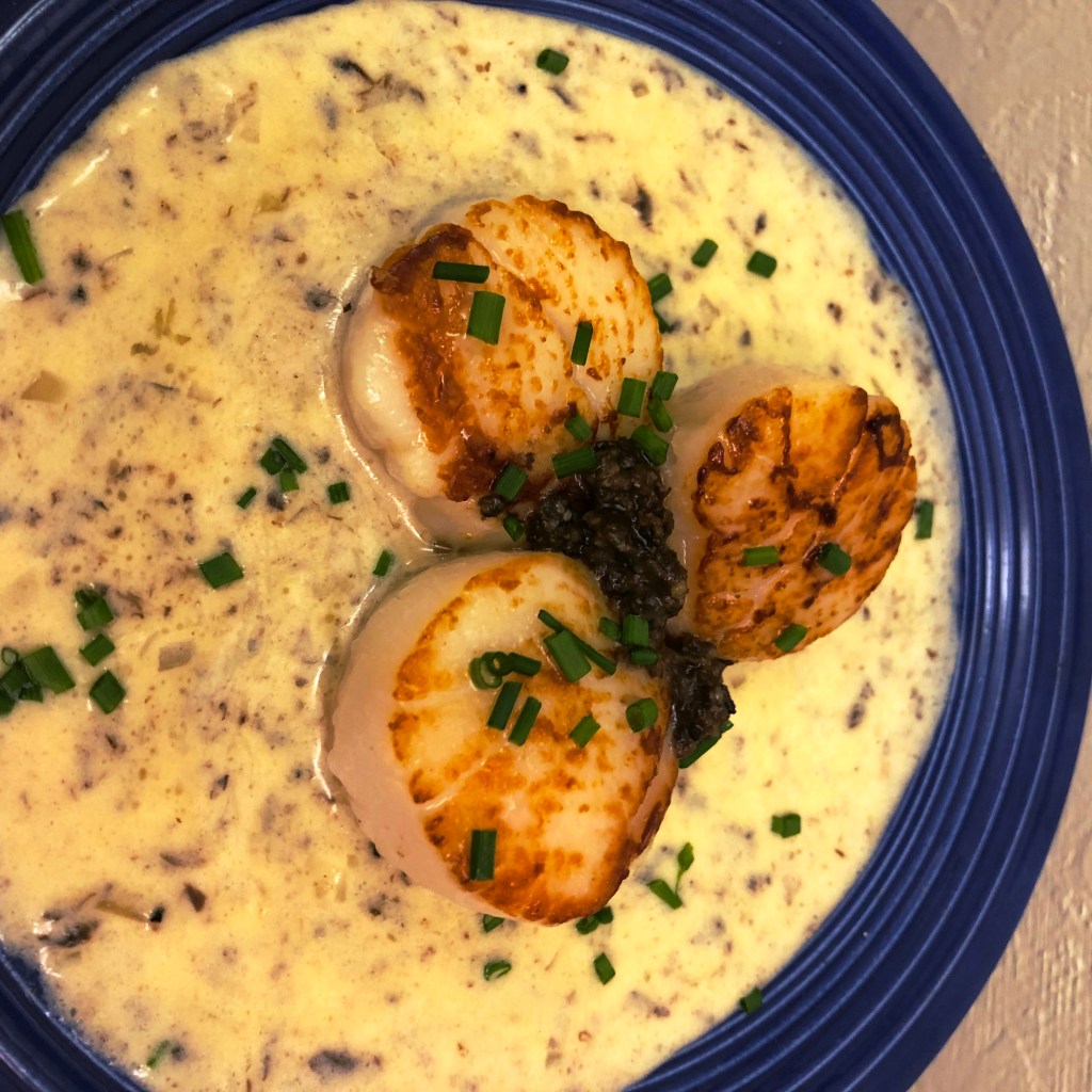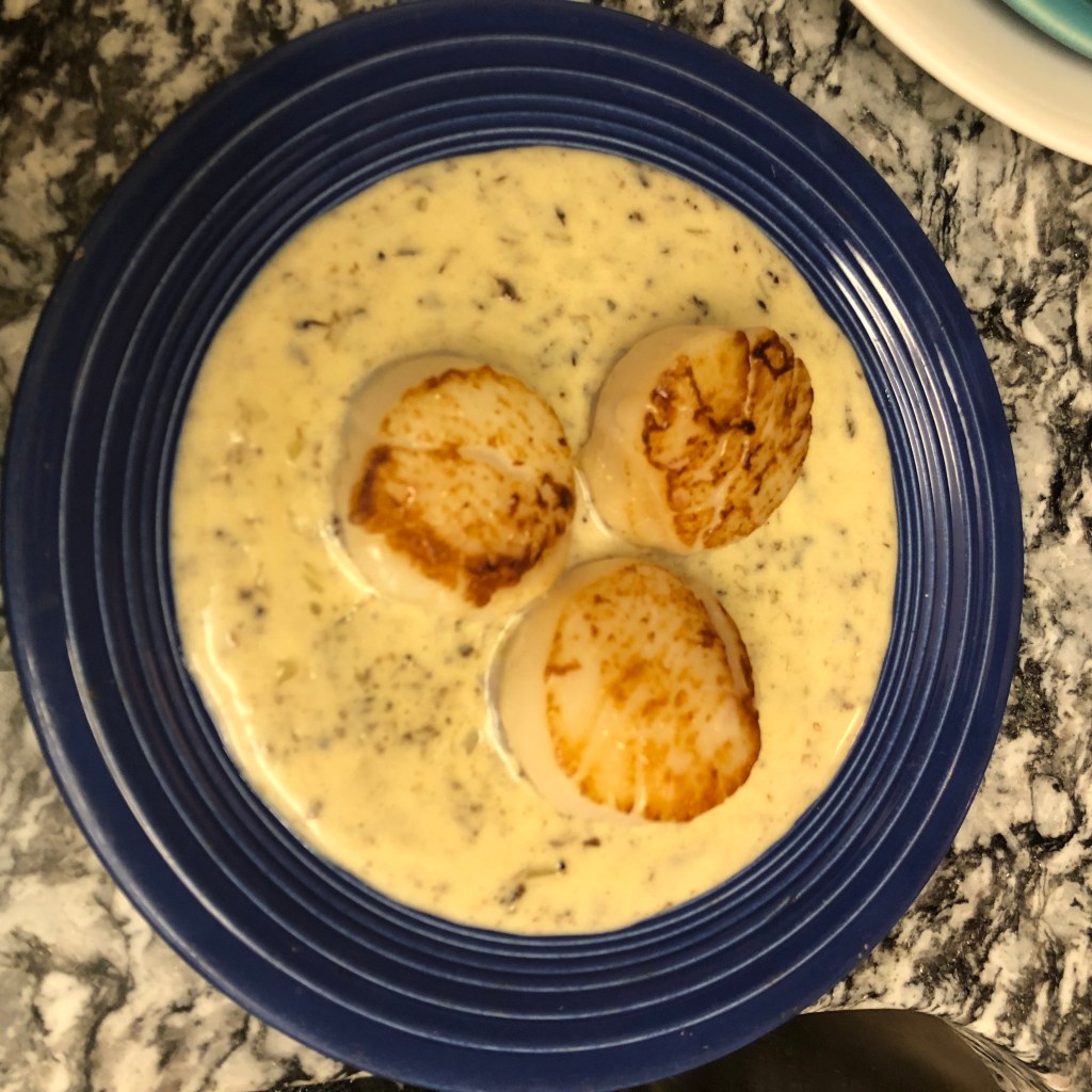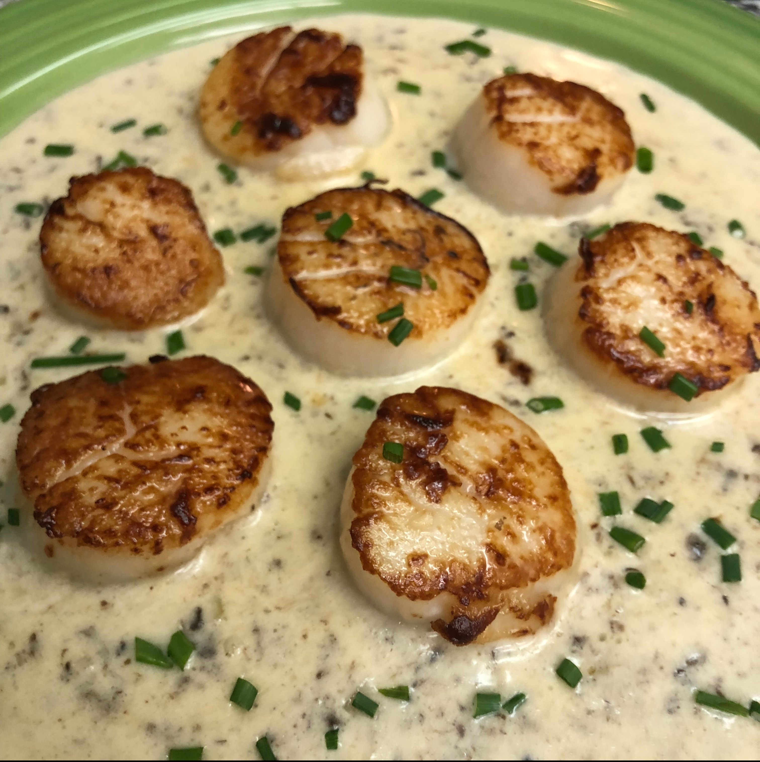 Original recipe: https://www.tastewiththeeyes.com/2013/12/holiday-fare-pan-seared-sea-scallops-with-a-champagne-truffle-cream/