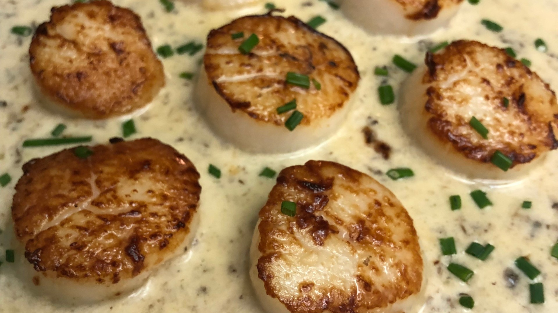 Original recipe: https://www.tastewiththeeyes.com/2013/12/holiday-fare-pan-seared-sea-scallops-with-a-champagne-truffle-cream/
