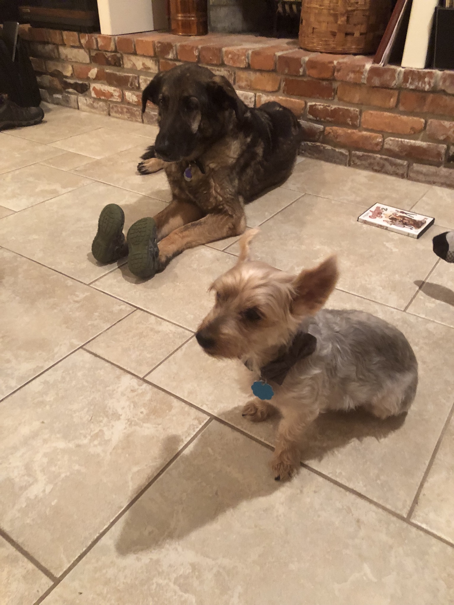 (and for a fun side story, while my oldest nephew was helping me in the kitchen, my youngest nephew put shoes on my dad’s dog! lol!)