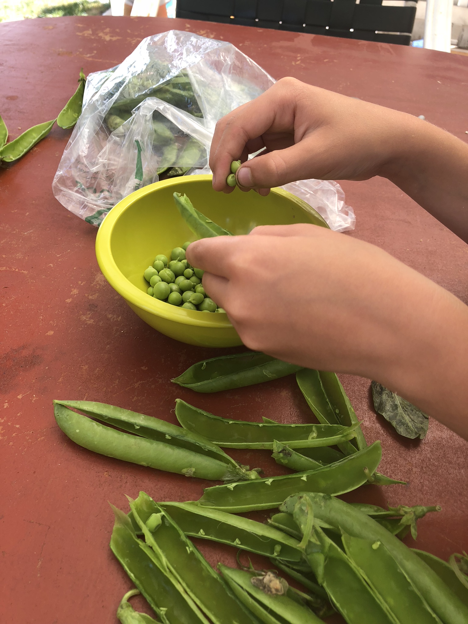 (If you need to blanch your peas): Bring a saucepan of salted water to a boil over high heat. Add the peas and cook until the water returns to a boil. Drain, and immediately submerge the peas in the ice water. When they have cooled, drain them again and set them aside.