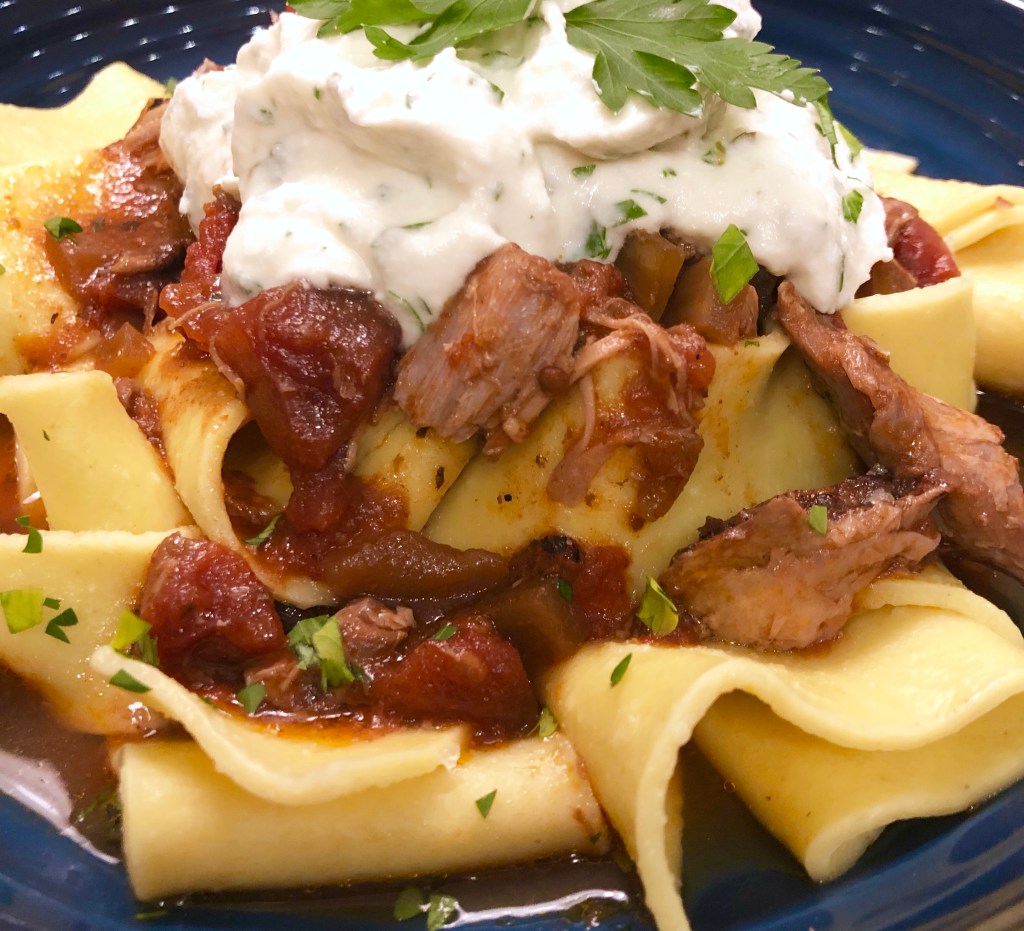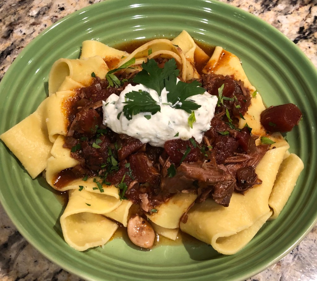 When I was designing this recipe, I knew that my audience was going to be two local foodies and a fellow food blogger (who is also a wine connoisseur.) I knew I wanted to make something that would cook in the crock pot over night, and plate up well after being transported. This recipe really nailed all of those requirements.