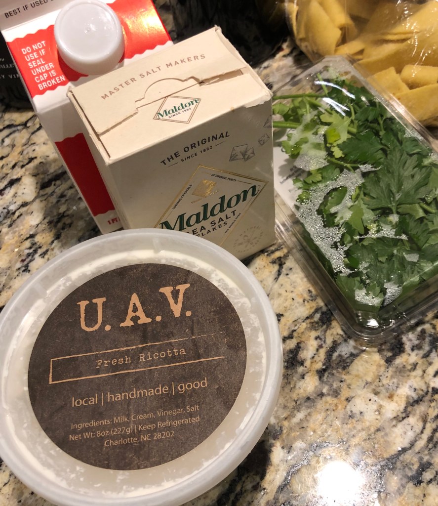 1 cup fresh ricotta (UAV can also be purchased at Pasta and Provisions.)