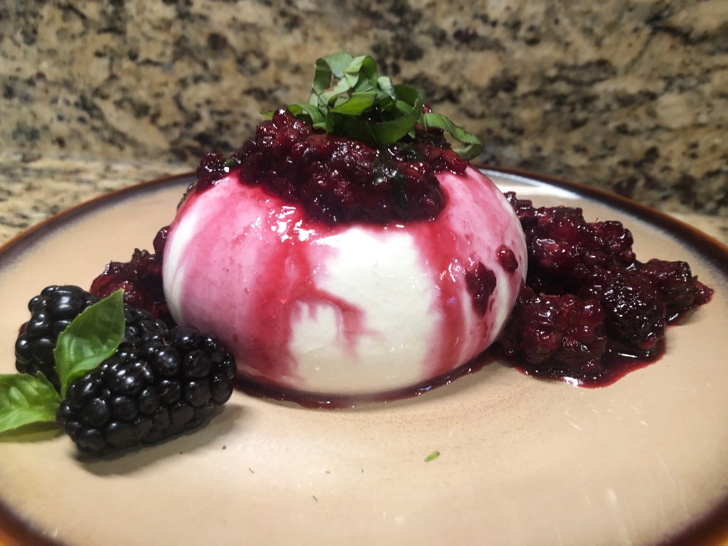 On a platter, top burrata ball with blackberry mixture. (This can be warm or already cooled from earlier.)