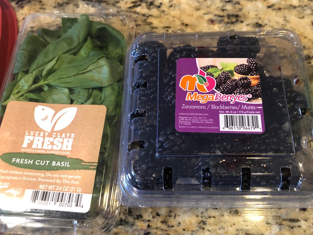 Serve with the other half half of the basil, extra blackberries, and bread.