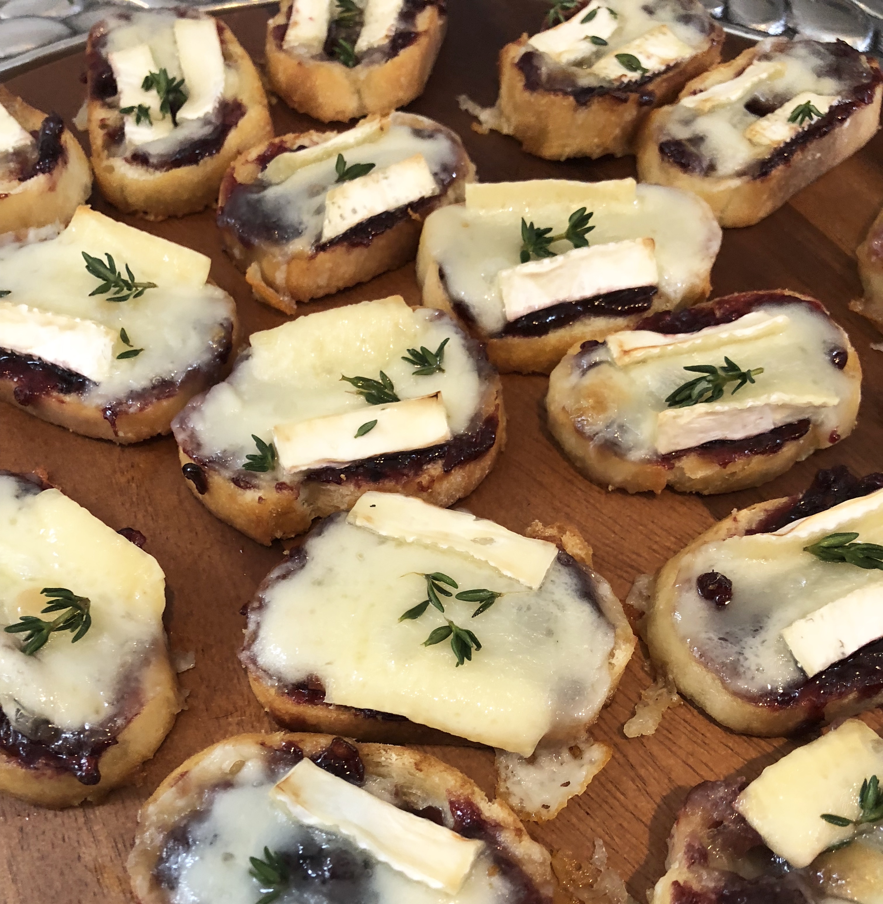 This easy to make appetizer is perfect to throw together on a weeknight, or for this particular display, a wedding shower. It can be changed out for any other flavor jams other than blackberry, another cheese such as goat cheese or cheddar, and even fresh herb changes! Follow the basics (and adjust melting time) and these will be stolen off the table.