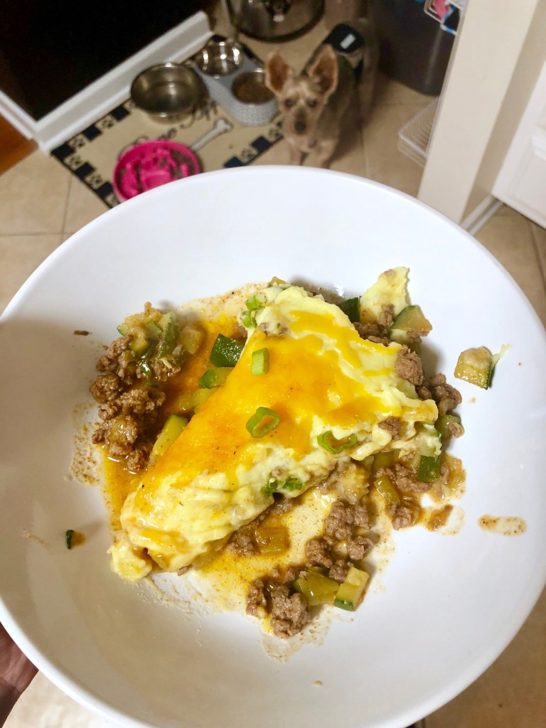 You first have to say: Wait. What is Cowboy Pie? I certainly wasn’t sure when I first came across this original recipe, but now it makes perfect sense! It’s a Tex-Mex version of Sheppard’s Pie. You’re cooking up your beef with peppers and chili powder (or even can add taco seasoning or salsa), then topping it with creamy mashed potatoes and cheese. Just sayin’, why have I not thought of this sooner?
