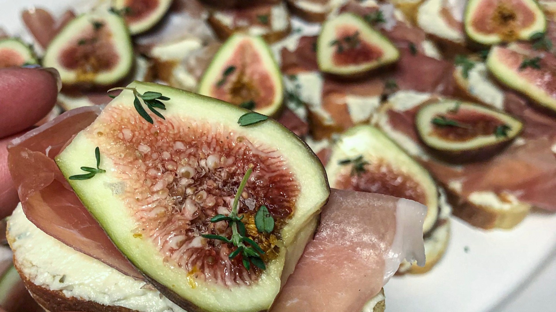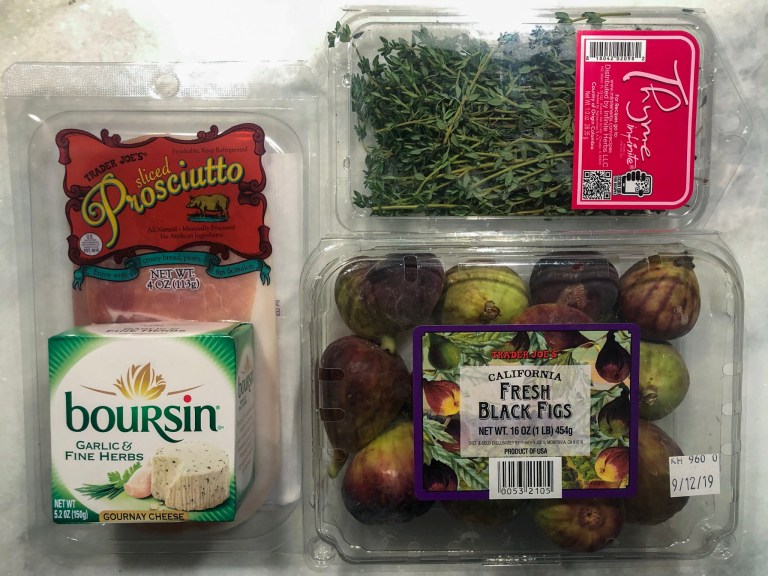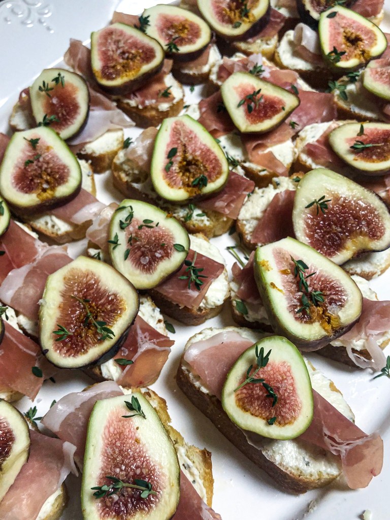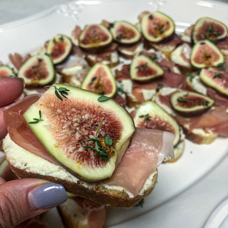I love when fig season rolls around! The fruit is unique in texture and flavor, and it pairs so well with salty treats. I stumbled upon them at Trader Joe’s the other day, and then just walked around to grab other fun ingredients that pair well: prosciutto, thyme, bread, and cheese! I quickly put this together for the ladies, and needless to say, there were none leftover!