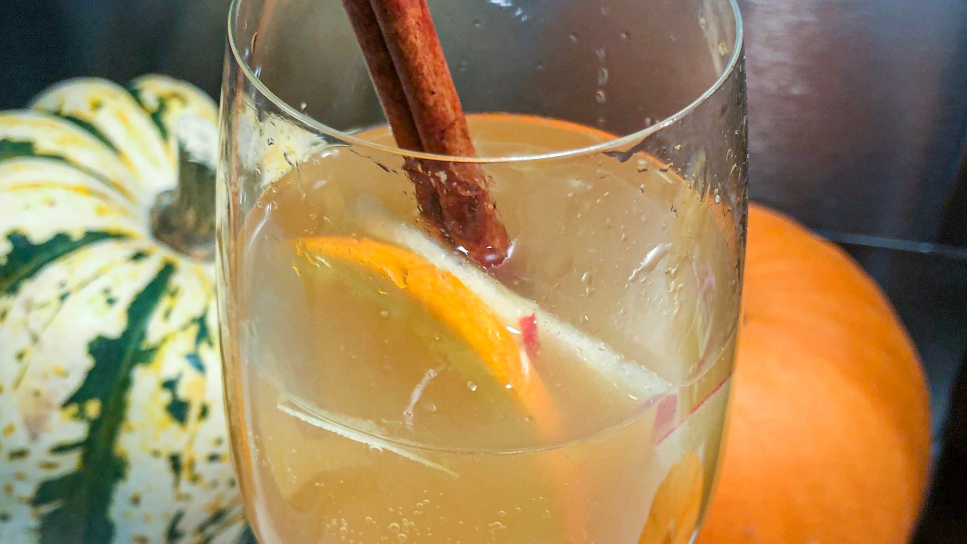 I love the changing of the seasons because it becomes a new inspiration for recipes and decorations! The fun thing about fall is the apples, so this sangria was a perfect time to throw in some apples, apple cider & cinnamon whisky. Plus when you top it off with champagne, you get fun bubbles with a fall twist!