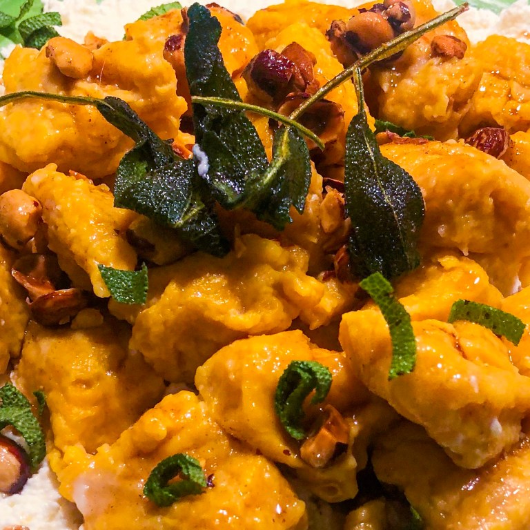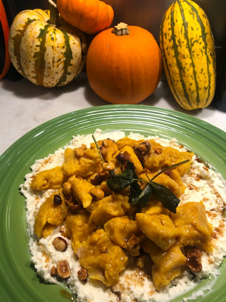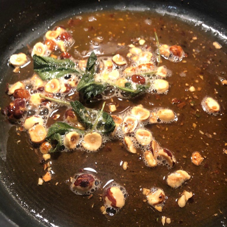 Fall! Fall! Fall! Pumpkin! Sage! Pumpkin! I’m all about seasonal flavors. I also have a ridiculous amount of sage growing in the herb garden. This recipe’s brown butter sage and hazelnut sauce is going to make you want to double the sauce recipe! Trust me, this was a doubled sauce recipe because it was so good.
