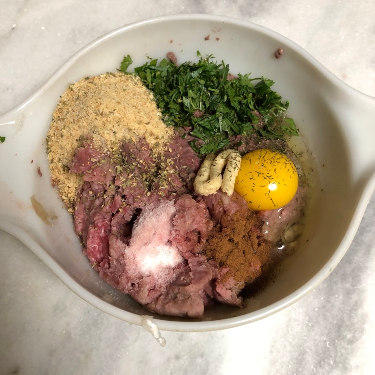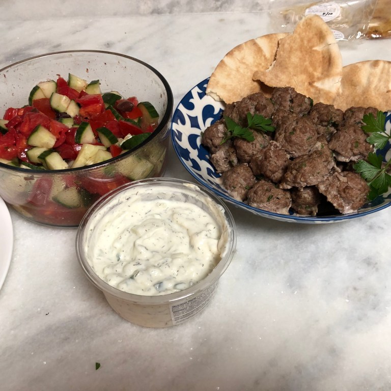 Meatballs is one of my favorite dishes to make, and this flavor combo made me ooh and ahh at the dish while eating it with the family! The combination of lamb, beef, or other meat, served with an awesome side salad and tzatziki with pita bread made for one happy family (and two happy dogs!)