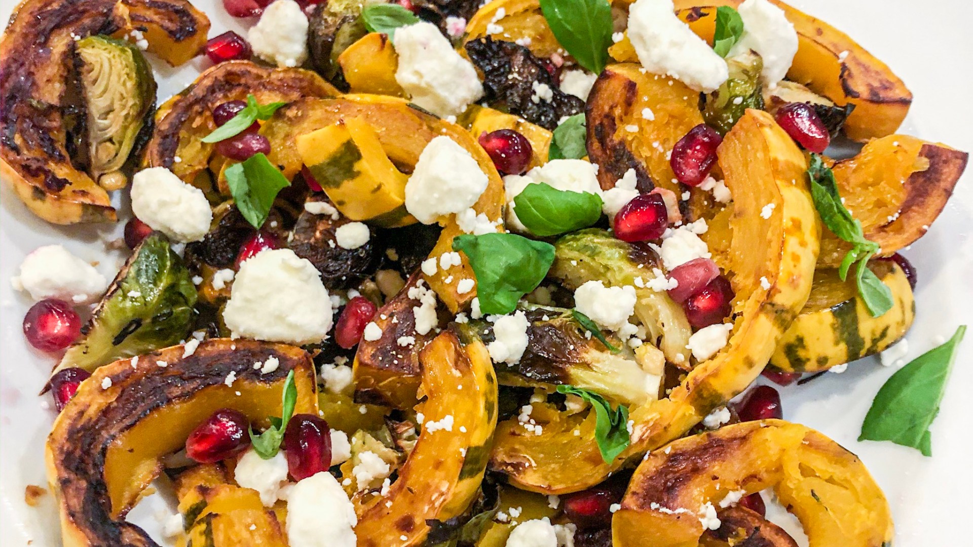 Adding in the colorful pops like the pomegranates, goat cheese, and herbs really make it a great dish for fall or winter.
