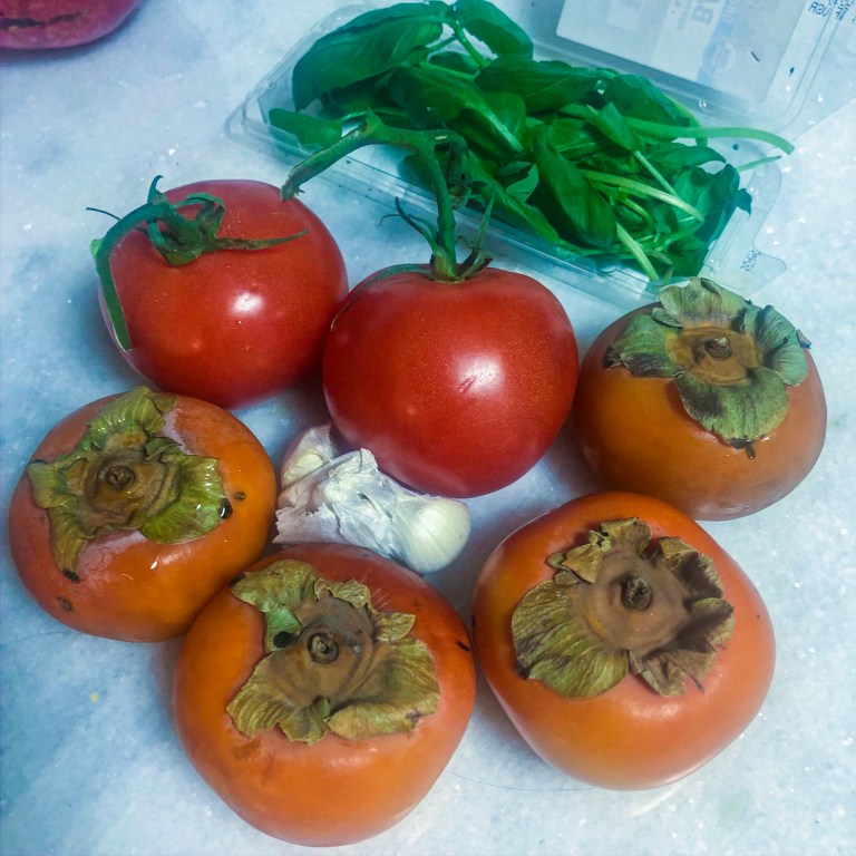 I prepared this for the girls at cooking club and they said they had never had persimmon before! We loved the way the cheese, persimmon, garlic and tomato balanced out.
