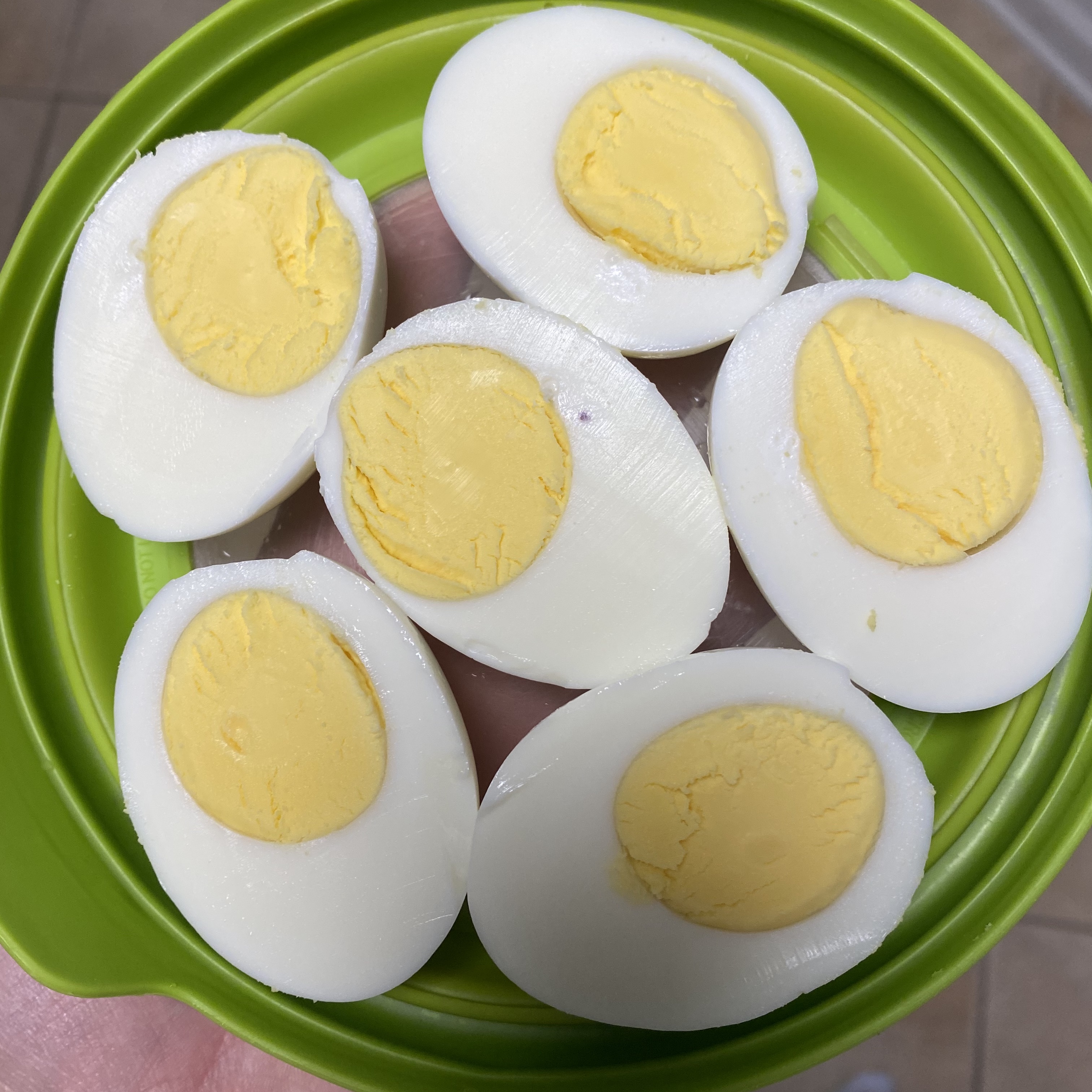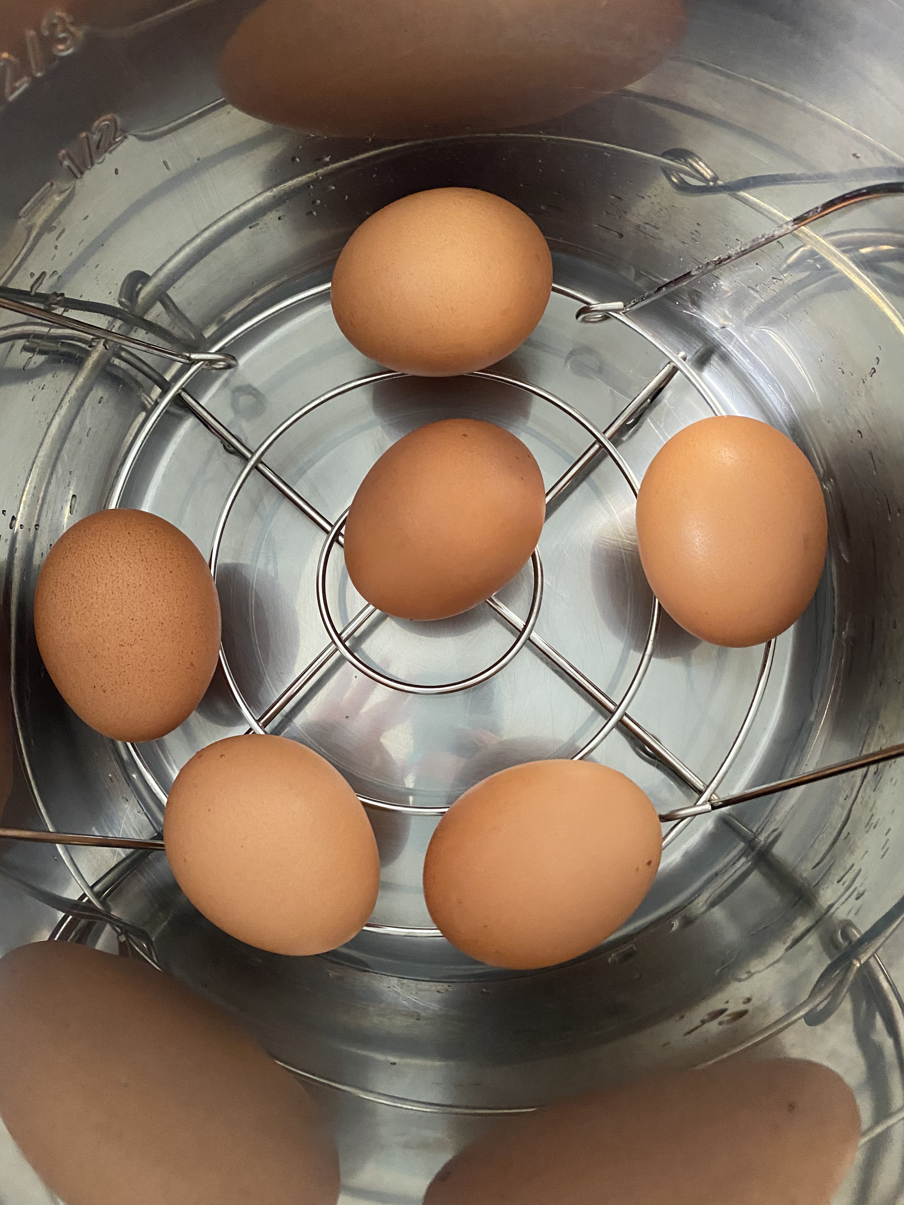 Hard boil your eggs. (Everyone seems to have their own way. The two I think are best are using the Instant Pot and the 5-5-5 method. If you don’t have an instant pot, let cold water (with some baking soda) come to a boil, cover, remove from the heat, and let sit for 12 minutes.) Cool and Peel.