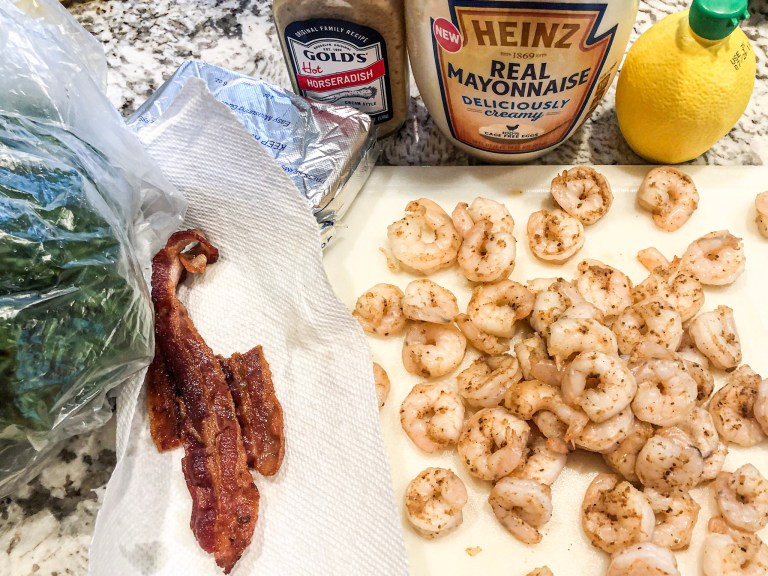 - 1 pound cooked shrimp, seasoned & roughly chopped