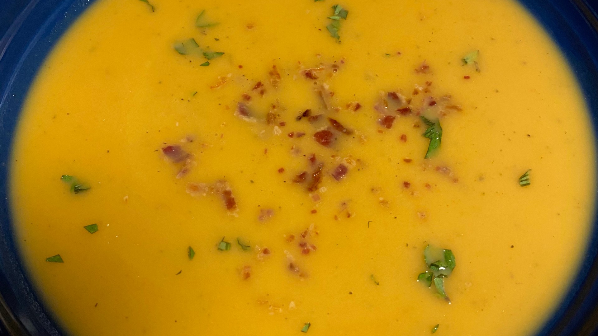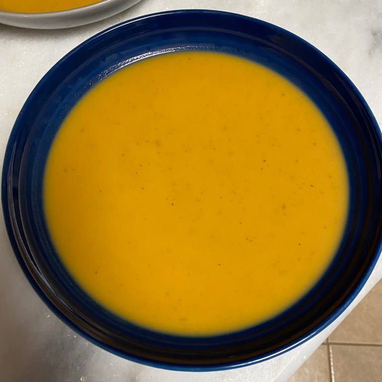 Use an immersion blender to puree the soup until smooth. (Or you can transfer the soup in two batches into a traditional blender, and puree until smooth, being very careful when working with the hot liquid.) Taste, and season with additional salt, pepper, curry, and cayenne if needed.