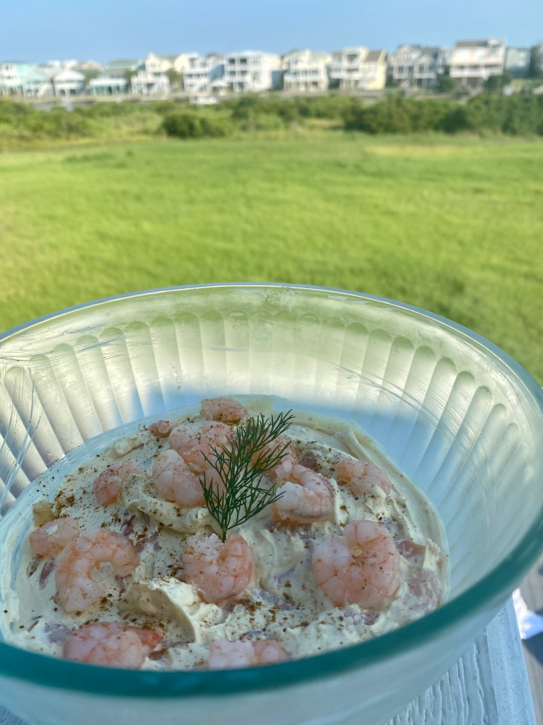I love when you make an awesome recipe based on being inspired from ingredients that you see and you know would be delicious together. First, we picked up these shrimp at the fish market near Calabash, NC, which is right on the water. Knowing you have delicious and fresh seafood, the recipe evolved from there.