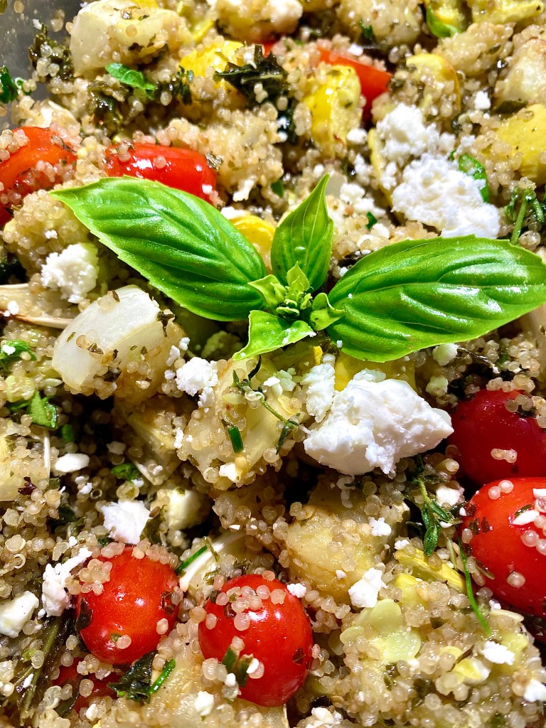 This recipe can be as vegetable forward or quinoa forward as you like. You can add more veggies or more quinoa. Also, the great thing about this recipe is that you can change out your vegetables. Feel free to add extra eggplant, all zucchini, or omit spinach. Enjoy your vegetables!