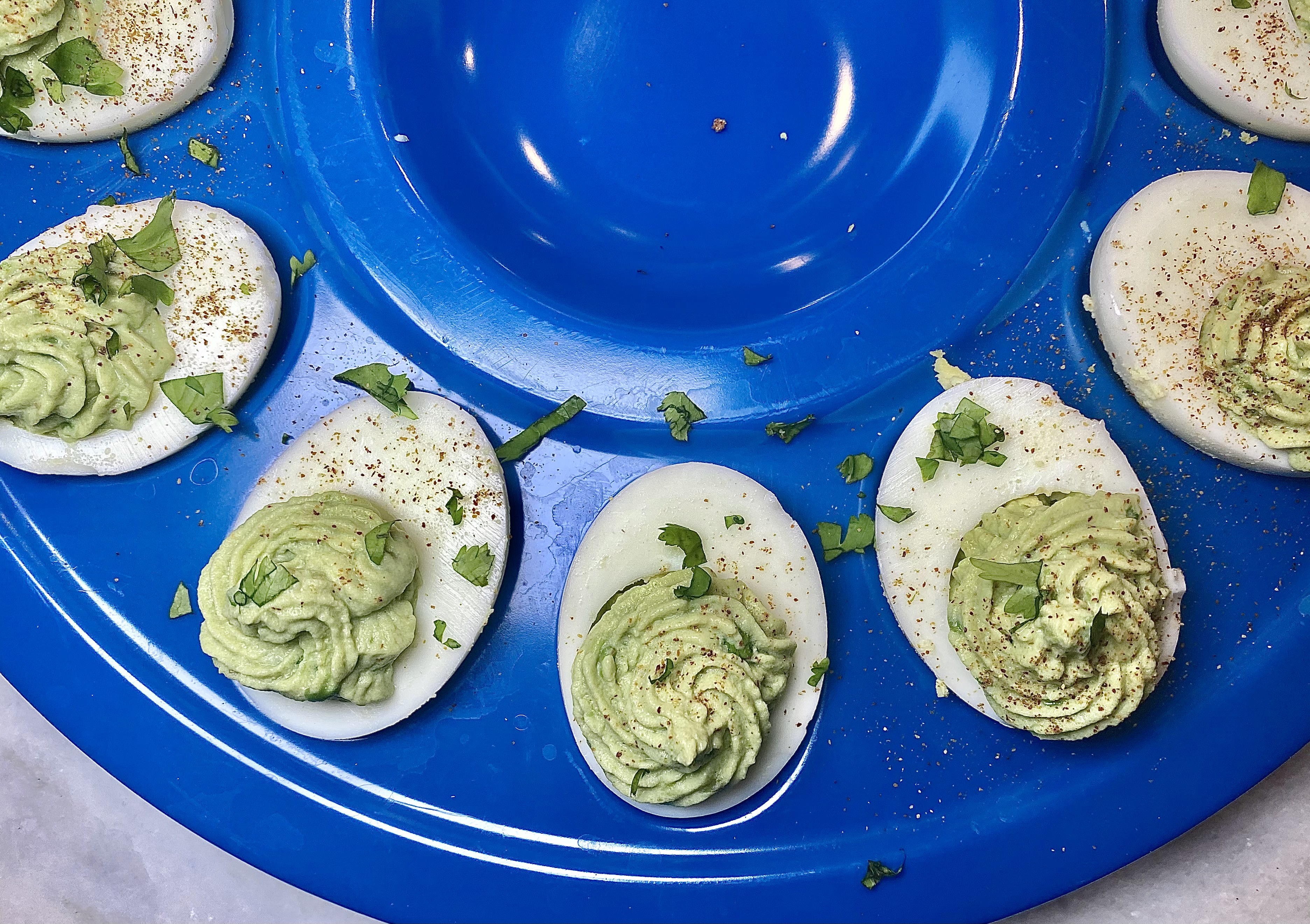 Eggs and avocado, both ingredients that are delicious, and when combined, awesome! Eggs are such a great source of protein, using them with zesty Dijon and guacamole make for a great party food. You can make a small batch to snack on, or a larger one for a party or holiday. (Think St. Patty’s, Easter, etc!)