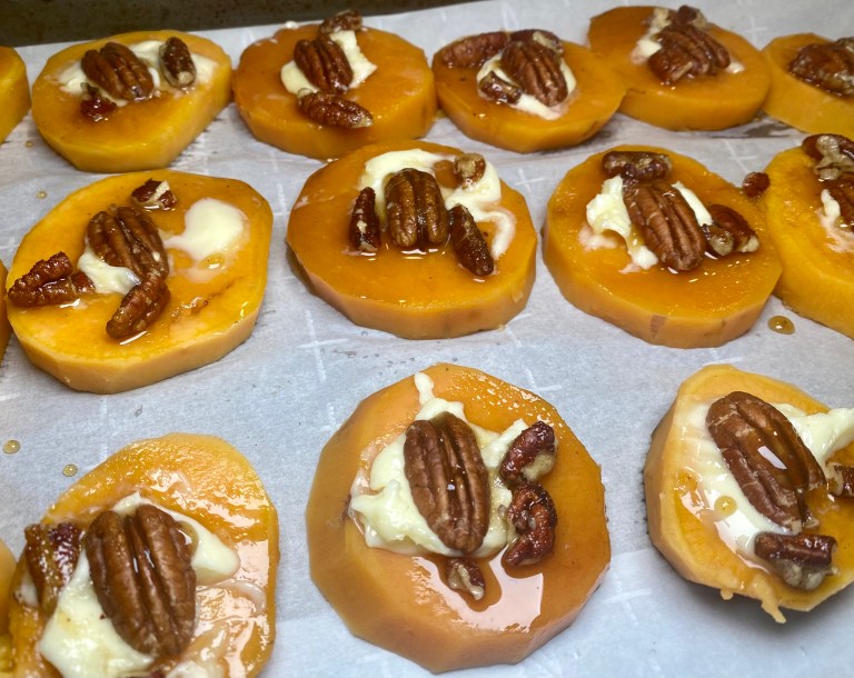 Maple Pecan Roasted Sweet Potato Slices