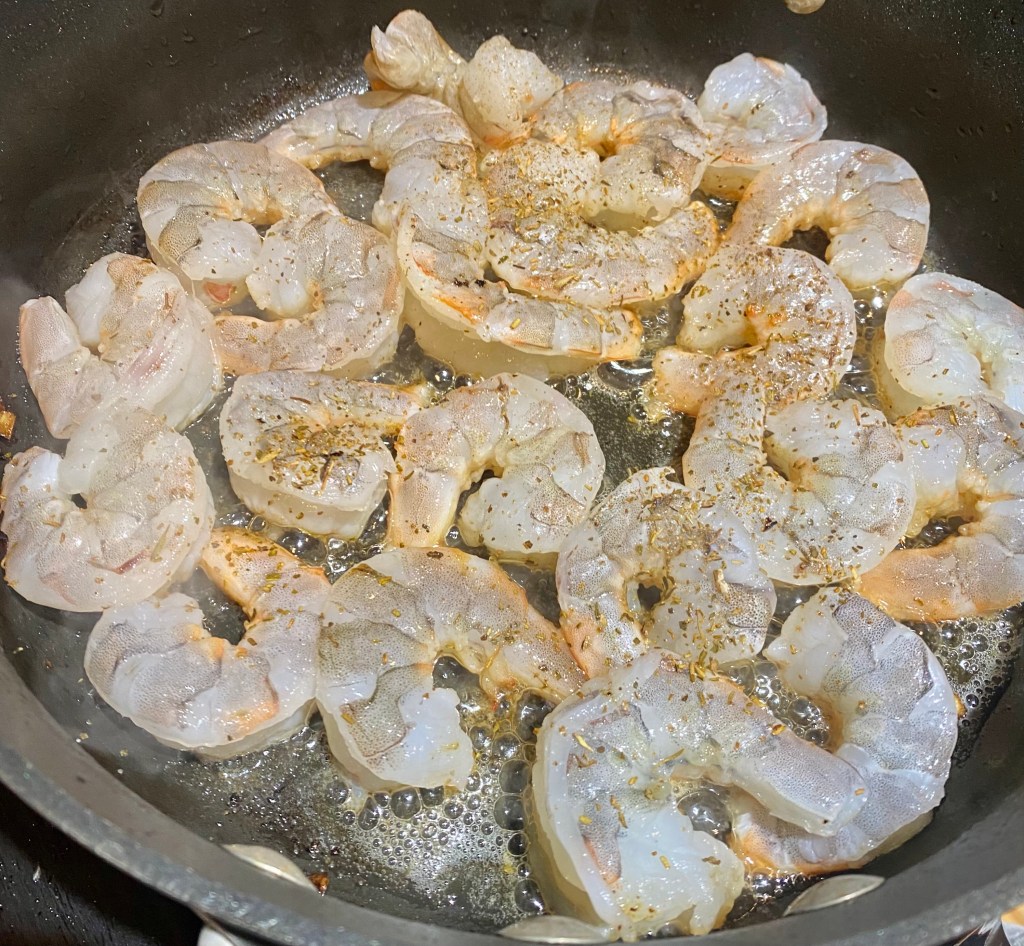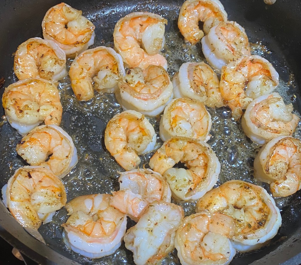 Add shrimp and sauté until just cooked through. Remove from pan once cooked.