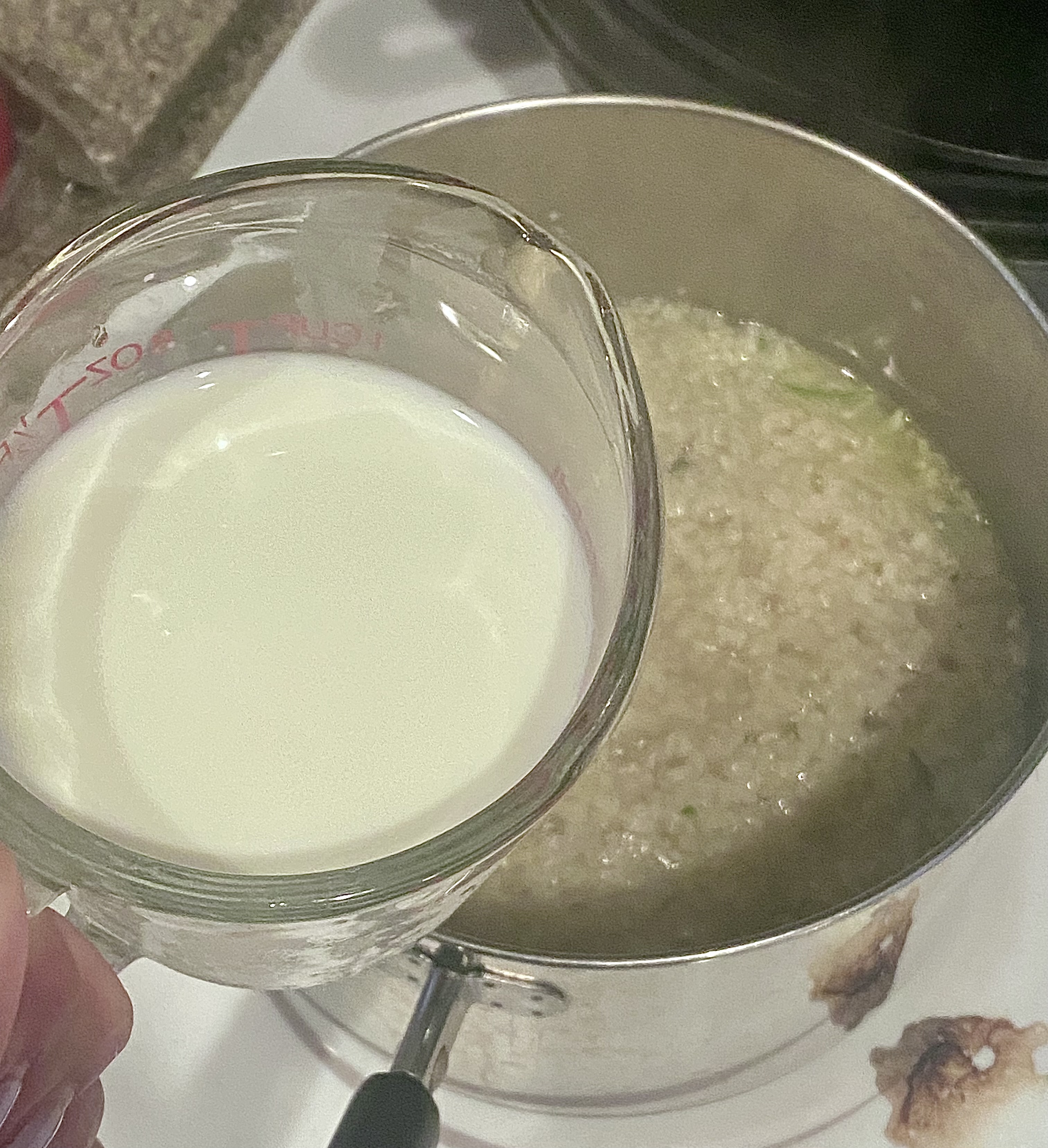 - Add cauliflower rice and garlic, then sauté for another 4-5 minutes until the cauliflower rice is cooked and softened.