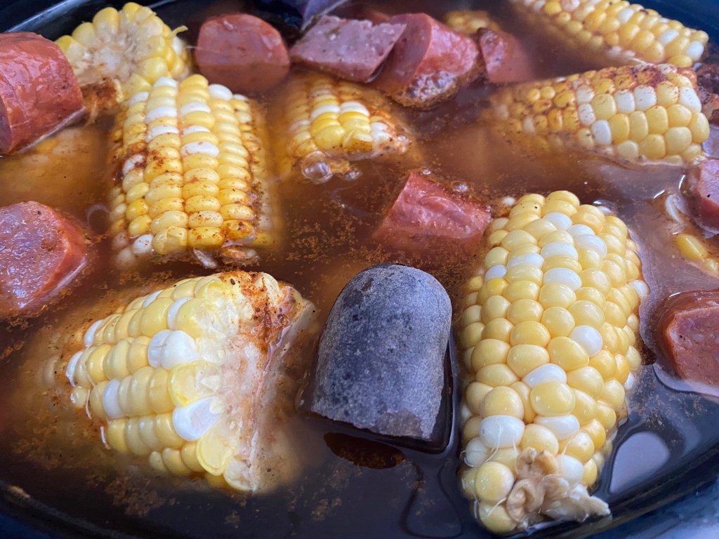 - 4 fresh cobs of corn cut into 3-inch chunks